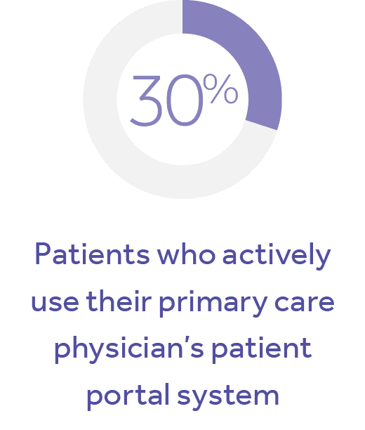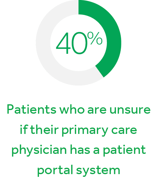 Although 90% of healthcare organizations offer patient portal access, only 30% of patients actively use the portal, meaning over half of patients do not have access to their own medical information. Furthermore, nearly 40 percent of patients are unsure if their primary care physician has a patient portal system.